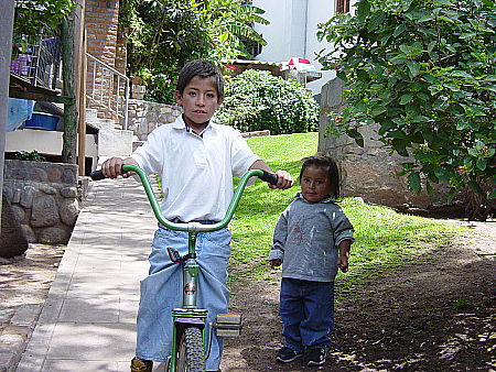 Gerry & Ruth Gutierrez' Prayer Letters & RequestsChristmas in Huanta: December 27, 2006 Merry Christmas!!! Five weeks ago Benjie took this "prize winning picture" of two little boys taking care of each other. The picture touched our hearts in such a way that I looked for the boys all over with no success. After much prayer the Lord led us on Christmas Day to the boys who were in the same neighborhood playing with their older brother who was building small road on a dirt mountain for their plastic little car. There we saw that the older brother (17) was also taking care of these young ones. We have to encourage such behavior. We fell on the family like ton of bricks and attended the needs of the entire family. We cannibalized two old bicycles from our orphans and painted it for them. We also took several pieces clothing for each of them. (Garage sales things from the States). As a result they will join the Quechua congregation that is starting formally on the Seventh of January. It will be a long time before they again walk naked and barefooted. I know it is not much, but for these two little ones and their family "We made the difference". I thought you would like to see their smile and approved what we did as your representatives in the Andes Mountains of Peru. "When I was naked you put clothes on me". Praising and thanking our God for the opportunity. Gerry and Ruthie Gutierrez