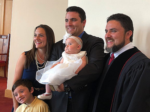 Nathaniel Harry Gutierrez Marshall officiating the baptism of Aaliyah Kay.”
