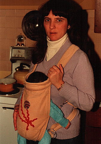piggybacking on Ruthie’s belly pouch.