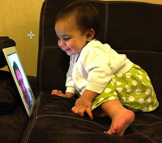 Pictures are of Gabriella Gutierrez visiting with grandpa on Skype from Peru. The other is Nataniel and friends at the same age.